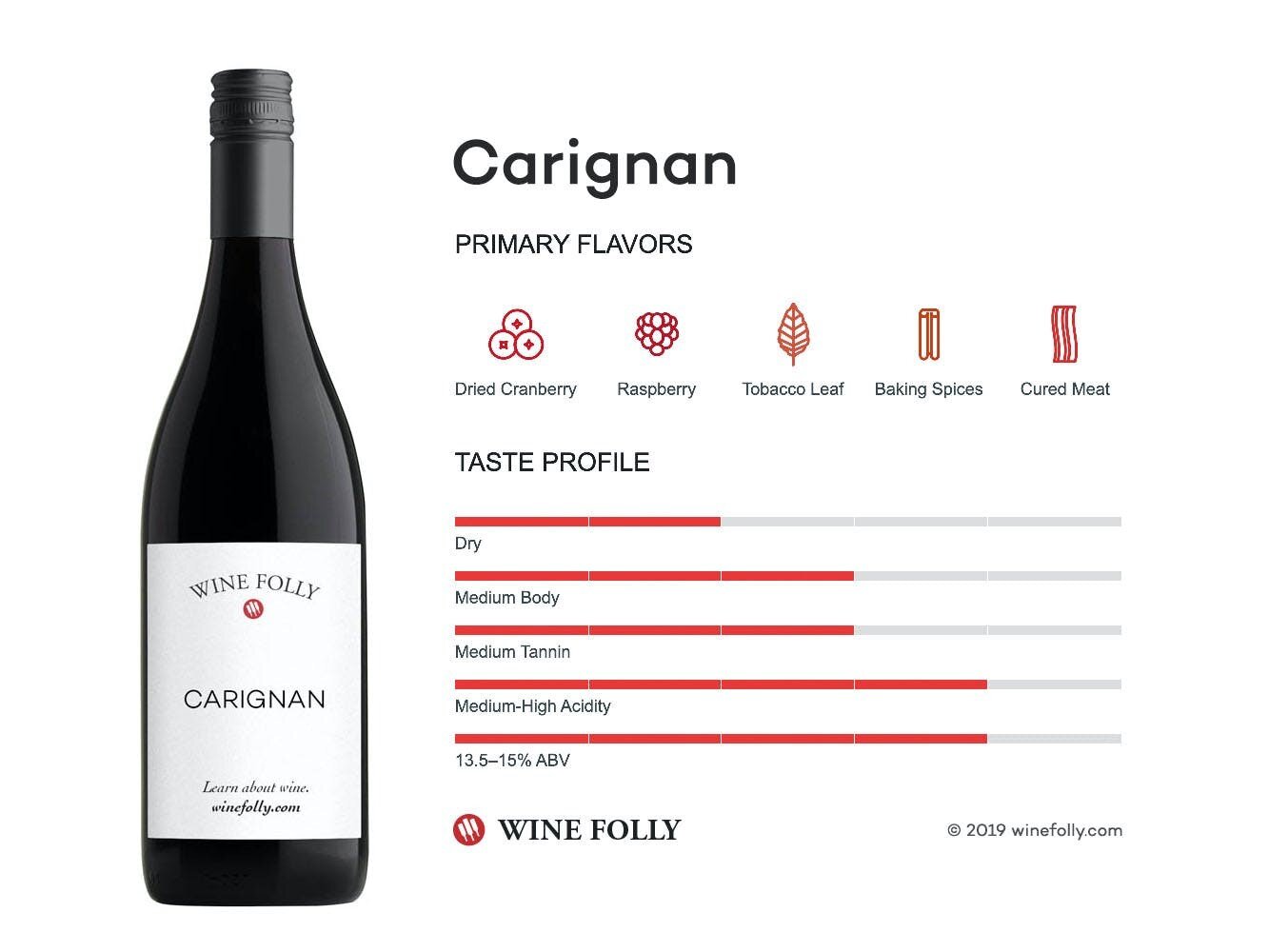 Ze vertonen aroma’s van rijpe rode bessen, zoals frambozen en aardbeien, met soms tonen van zwarte bessen. De druif heeft over het algemeen stevige tannines en een medium tot volle body, wat resulteert in wijnen met structuur en kracht. Carignan wordt vaak gebruikt in blends, waar het kan bijdragen aan de complexiteit van de wijn. Het heeft de reputatie dat het goed gedijt in warme klimaten en arme bodems. In sommige regio’s wordt deze druif echter ook gevinifieerd als een op zichzelf staande variëteit. Met name wanneer de wijnstokken oudere wijnstokken zijn, wat de kans op diepere en geconcentreerdere wijnen vergroot. De druif is bekend om zijn vermogen om hoge opbrengsten te leveren. Echter, wanneer de opbrengsten worden beperkt, kunnen Carignan-wijnen complexer en geconcentreerder worden. Ze passen goed bij gegrild vlees, stoofschotels en andere stevige gerechten. Carignan heeft een geschiedenis die teruggaat tot de 19e eeuw en blijft een interessante variëteit in de wijnwereld. Toon minder