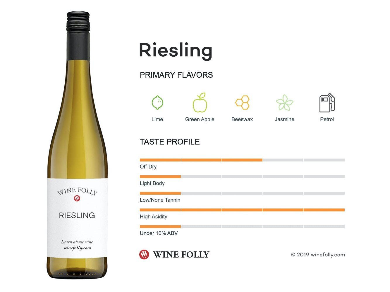 Riesling wijnen variëren van droog tot zoet, met een scala aan smaken, waaronder citrus, perzik, appel, bloesem en mineralen, afhankelijk van de rijpheid van de druiven en de vinificatiemethode. Ze hebben vaak een verfrissende zuurgraad die hen levendig houdt, zelfs als ze rijpen.