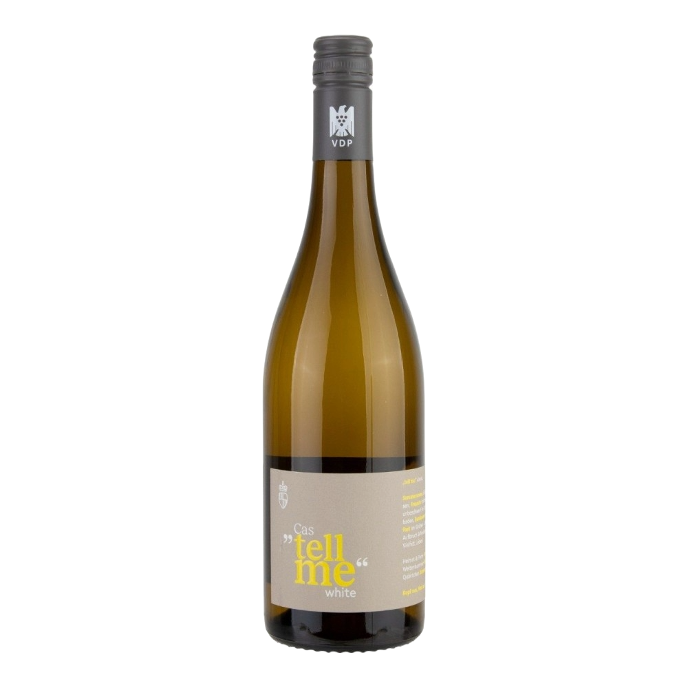 Cast Tell Me is een blend van Silvaner, Scheurebe en Riesling. Silvaner voegt structuur toe, Riesling brengt sappigheid, en Scheurebe verrijkt het geheel met tropisch fruit en frisse citrus. Het resultaat is een wijn die je blijft verrassen. Aroma’s van rijpe perzik, limoen en een vleugje bloemigheid springen uit het glas. De smaak is vol, met een prachtige balans tussen frisheid en diepte.