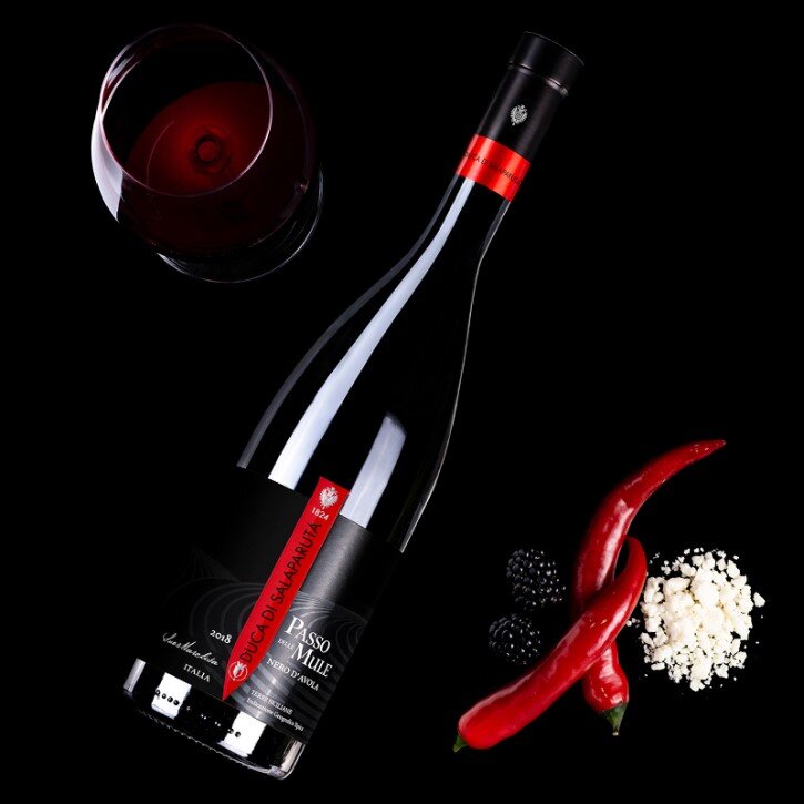 Passo delle Mule, puur Nero d’Avola, is afkomstig van de druiven van het landgoed Suor Marchesa, in Zuid-Sicilië. De druiven rijpen in september volledig in de zon op de kronkelende heuvels van de Zuster Marchesa landgoed, waar het warme en droge klimaat en een goede temperatuur de perfecte combinatie voor de productie van deze omhullende wijn, die zachtheid vertoont en toch merkbaar fris in de mond is. Een deel van de wijn brengt minimaal 10 maanden door in zeer fijnkorrelig eikenhout en een deel wordt gevinifieerd en verzacht in betonnen vaten. Na het bottelen rust de wijn nog 6-8 maanden in de wijnkelder.
