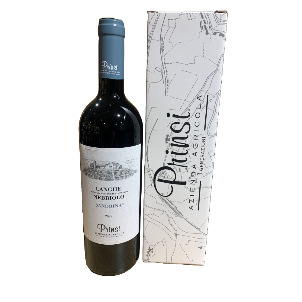 Geschenkdoos met Prinsi Langhe Nebbiolo Sandrina 2022