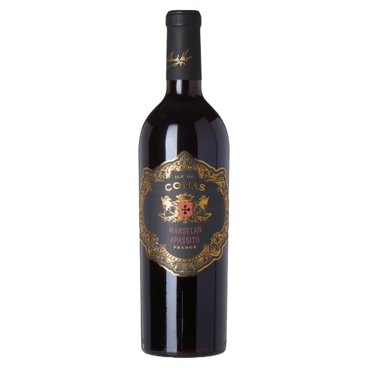 De wijn: Door het laten drogen van de druiven op rieten matten krijgt de wijn meer smaak, geur en kleur. Appassito of Passo, ripasso, ripassa, passito, appassimento, miopasso… het heeft allemaal betrekking op de vinificatiemethode. Ofwel de druiven van de Ile de Conas Marselan Apassito worden ingedroogd waardoor het suikergehalte toeneemt of er worden bij de alcoholische fermentatie druivenschillen toegevoegd (van bijvoorbeeld Amarone).