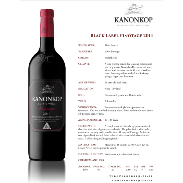 Meer informatie over Kanonkop Black Label Pinotage 2014