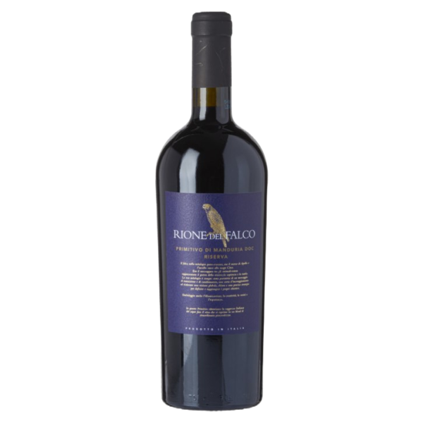 Rione del Falco Primitivo di Manduria Riserva komt uit de streek Puglia. Deze bevindt zich in het uiterste zuiden van Italië, in de hiel. Het is een langwerpige smalle regio die zich uitstrekt over 400km lengte van noordwest naar zuidoost. Het klimaat is mediterraan met zeer warme droge zomers en zachte, redelijk vochtige winters. Men vindt wijngaarden in het ganse gebied over een totaal van meer dan 100.000 ha. Puglia wordt ongetwijfeld op korte termijn een van ’s werelds meest interessante wijngebieden. Het wordt nu al beschouwd als de meest ‘sexy’ wijnstreek van Italië.